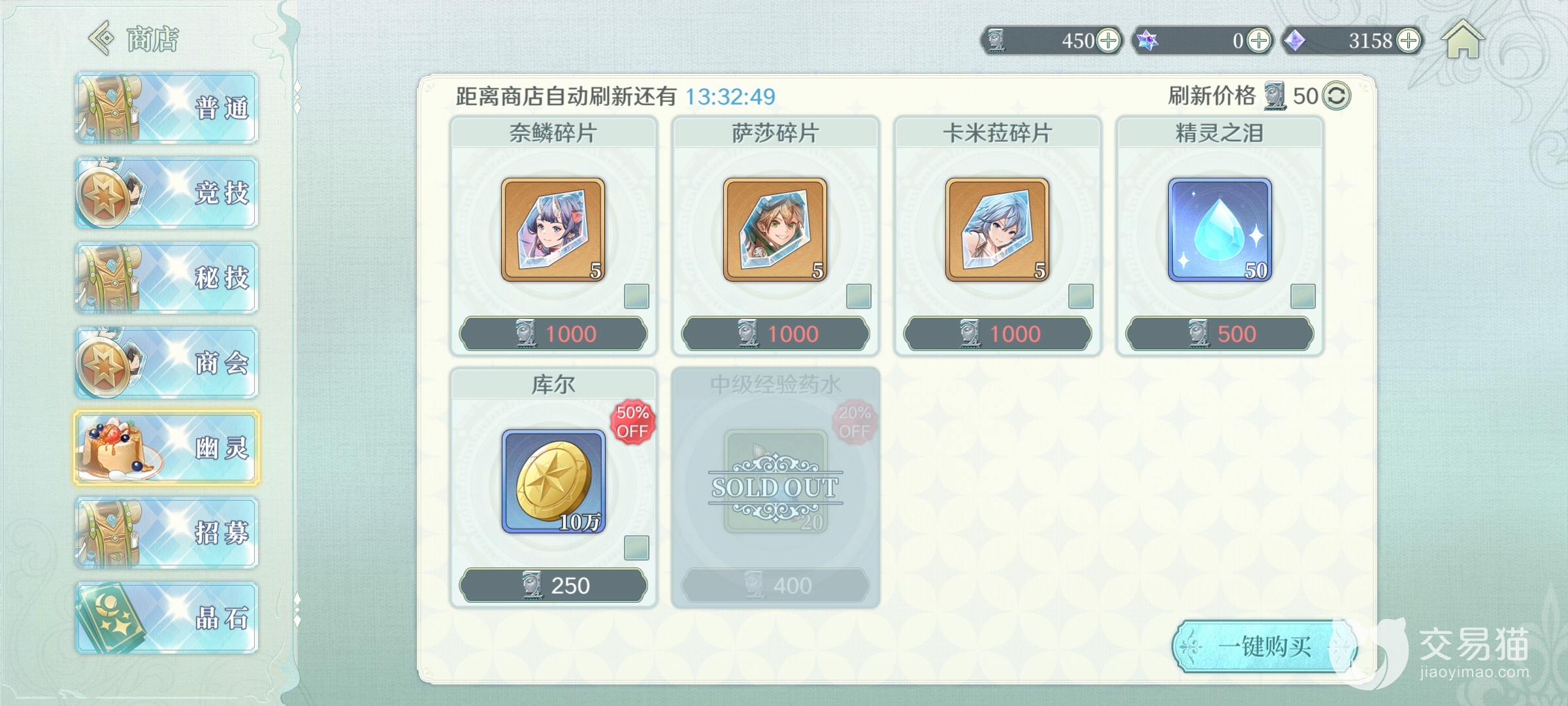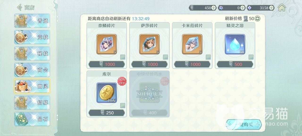 在幽灵商店中购买需要使用墓碑之泪,是参与幽灵鬼屋挑战获得的奖励。幽灵商店中首先推荐购买的是秘技升级材料和经验药水。sr角色是比较容易抽出来的,碎片也不难获得,所以并不建议大家浪费资源来买这个。
