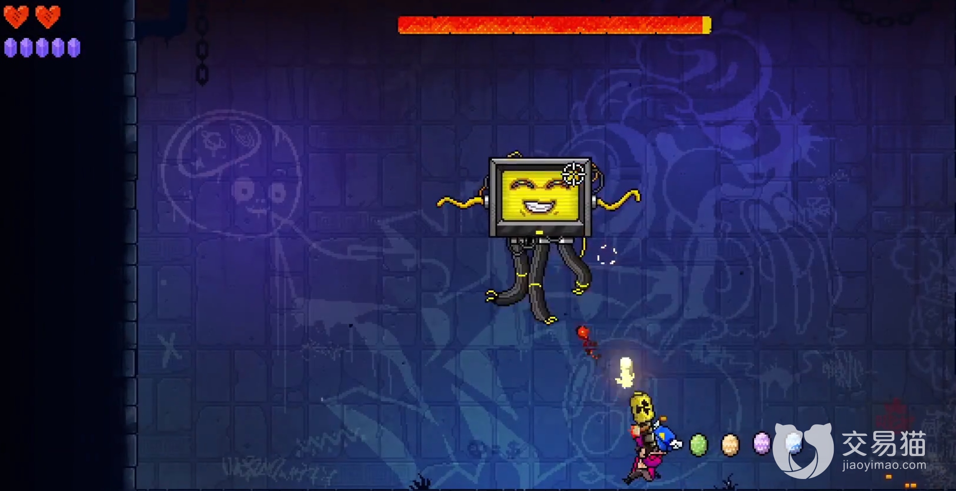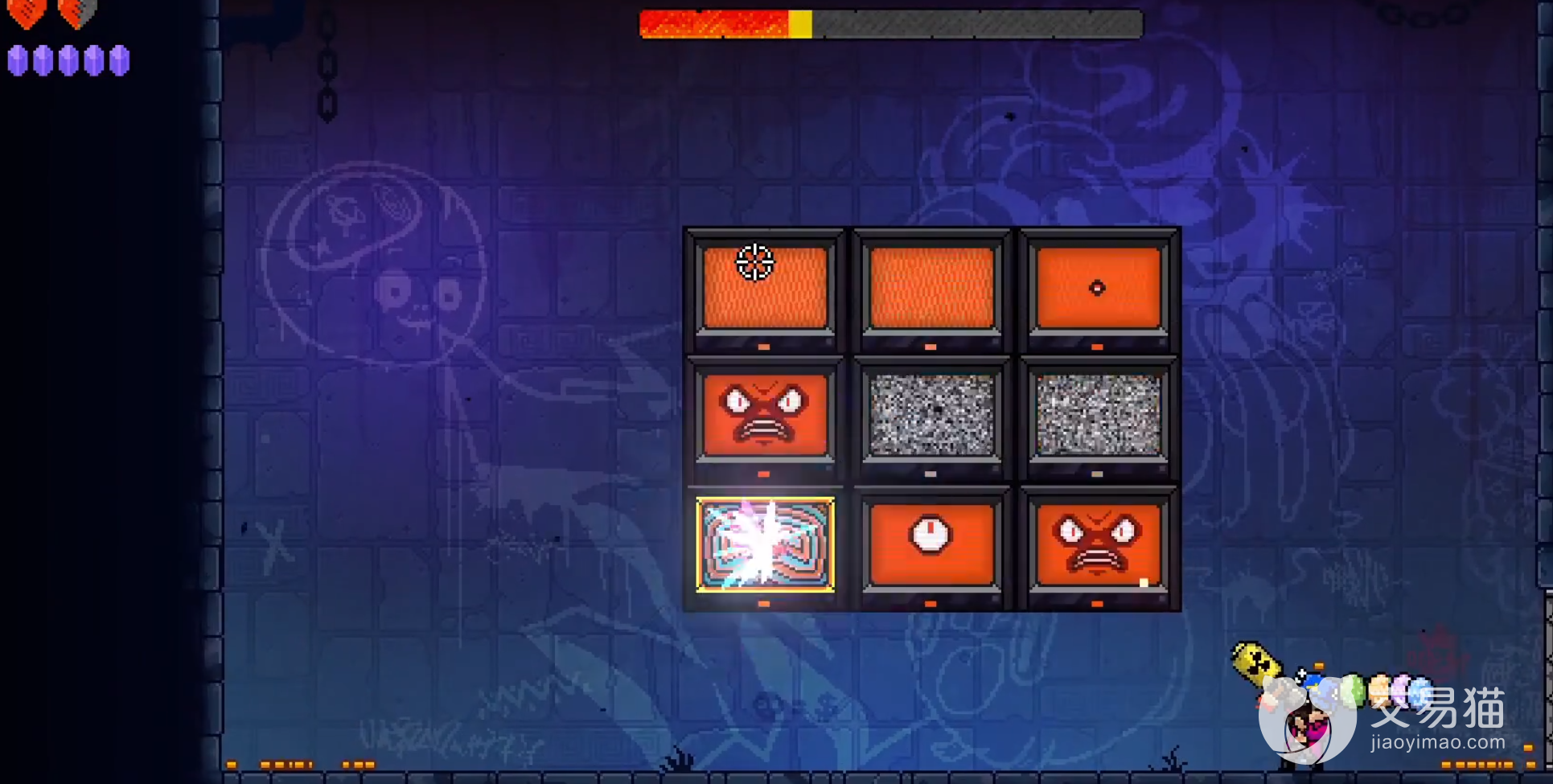 最后打到一半之后它会进入第二阶段也就是会出现九个屏幕挂在墙上,雪花状态是没有伤害的,一旦变红色就会射出密集的子弹,所以玩家需要在变色之后立即作出反应才能对付他,这个怪高星之后会有很大的变化,最主要的就是最后的的变挂墙电视会变多,而且子弹也会随之变多,灵活处理就能解决了。