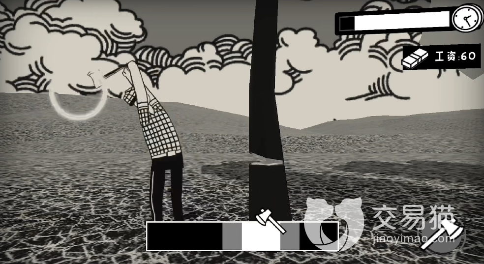 与其他经营类不同,其制作组并没有对工作过程进行省略,玩家需要通过各种操作来保证工作流程的顺利,比如上图中的伐木,就是需要依靠在合适时机点击进度条才能成功。