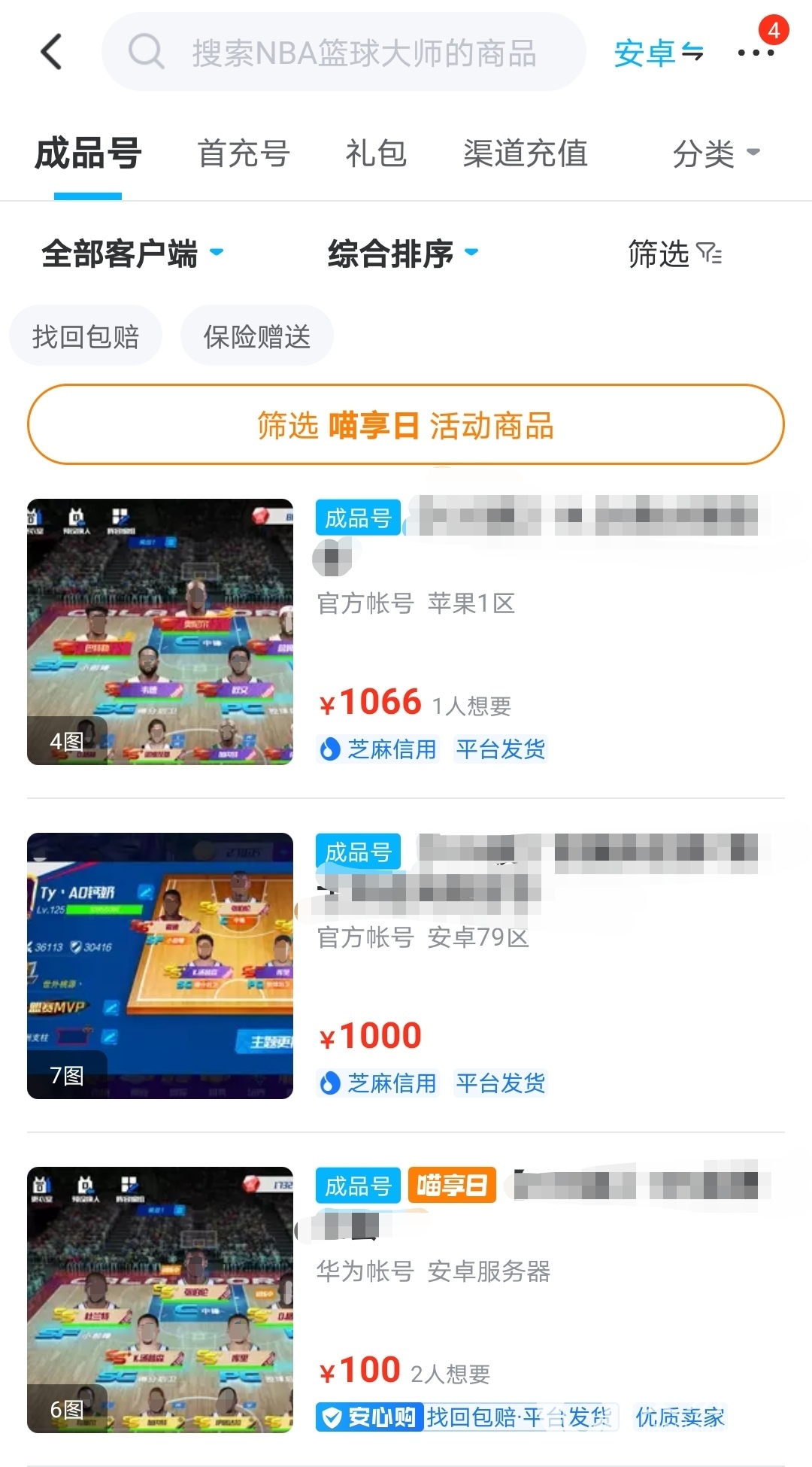 手中闲置的小号,或者玩腻了、没时间玩的账号都可以将其售卖出去,市面上对nba篮球大师账号的需求还是很旺盛的。