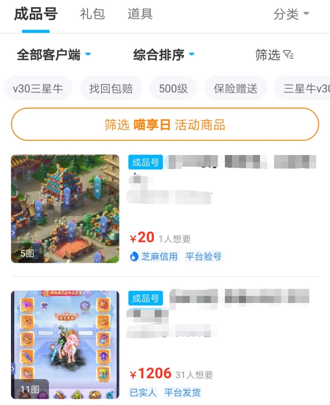 今天想要推荐大家用的平台就是交易猫了,里面有非常多的梦幻西游账号,不管是网页版的还是端游版的或者是手游版的都应有尽有,大家进入平台以后就能开始挑选了,而且交易特别安全靠谱。
