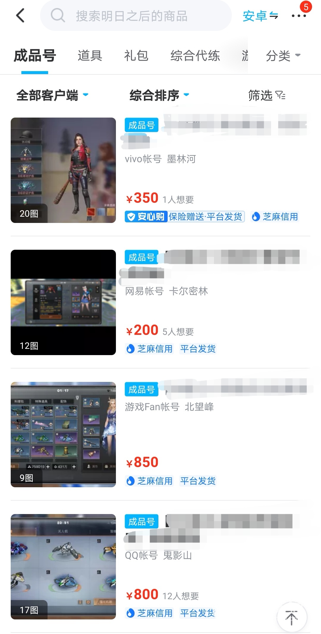玩明日之后的玩家,一般比较注重开放真实的末日生存游戏感,所以买个相对来说成熟的号,能使玩家直接享受全部的游戏乐趣。除了成品号,很多人也会选择购买首充号、初始号这类账号,没过任务、没推剧本,但开局很好,如果屏幕前的你有这类账号,也可以拿来出售,由此可见,市场是十分广阔的。