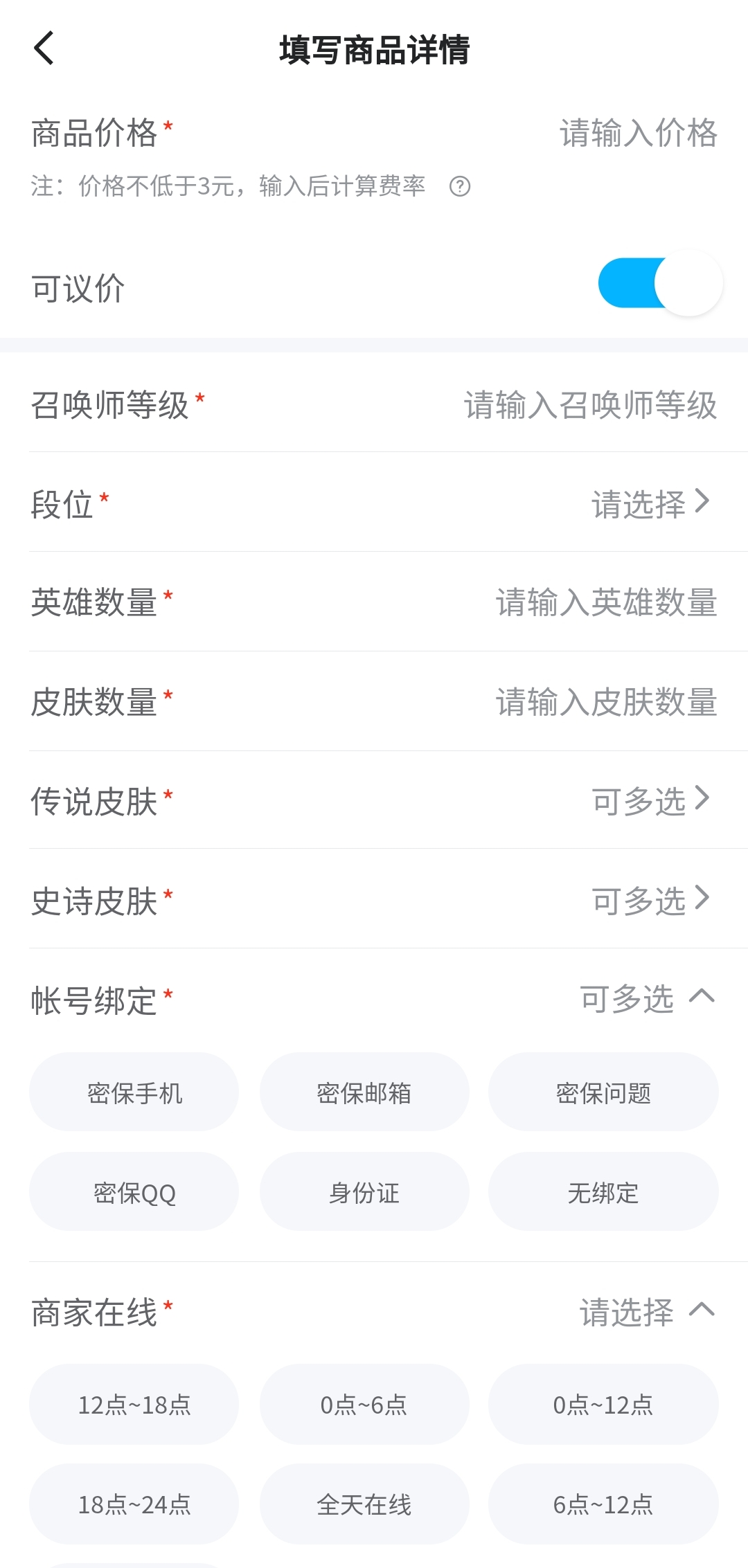 出售商品的操作步骤十分简便,平台方为广大卖家简化了流程,只需简单几步就能轻松将商品成功上架,并且许多游戏已经为你规划好该突出的账号信息,你只需要按照提示把每一项填好即可。这样做使买家能直观、高效地知道某个账号是不是自己想要的,节省了很多沟通时间,效率办事。