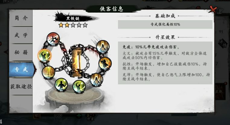 首先我们要了解一下他的技能属性:1技能九阳神功,对所有敌人的外力造成伤害,同时给己方所有人加持一个护盾,持续两轮,2技能是先天罡气,在战斗的时候,可以给所有倚天阵营的英雄造成额外的伤害,3技能是抱元守一,降低对方的怒火值。4技能金刚之怒发动,有一定概率对前方的敌人造成额外的伤害,并在一轮中陷入晕眩状态。