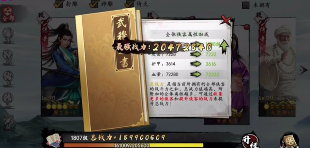 以上就是本期全部新射雕群侠传之铁血丹心侠客品质的内容了。较高品质的侠客升级难度对新手们来说是很大的,若抽不到或升级不到暂时也不要气馁,细水长流,相信你会慢慢体验到养成修炼的乐趣~