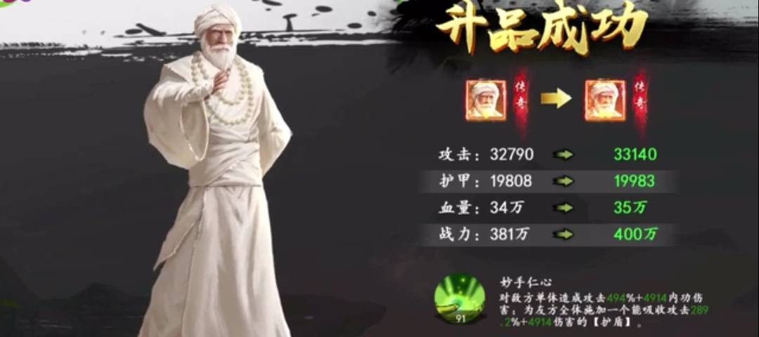 首先,我们需要在主页里找到侠客选项。进入后选择心仪的侠客进行修炼,修炼界面里选择进阶提升为该侠客升品。升级后,品质的颜色不会立即发生改变,在原来原色基础上达到加一或加二之后才会变色。升品后侠客在攻击,防御,血量和战力四大领域的属性各方面都有了增强。除此之外,通过升品还可用于解锁侠客更多未开发的技能,增加的战斗力决定了后期推图的整体进程快慢。