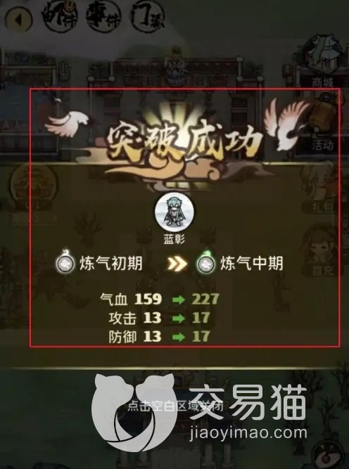 普通游戏里的升级就是《我的门派》里的突破。角色通过突破后,自身的各项属性就会得到提升。突破境界需要修为,只要修为达到了所需的数值,角色就能够进行突破。