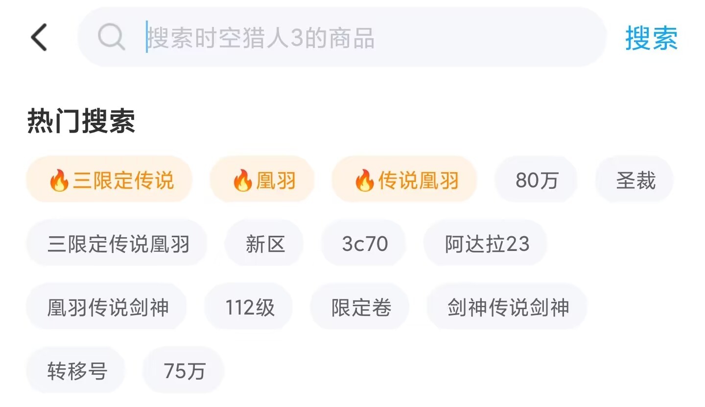 虽然大家都对时空猎人有一定的了解,但是这毕竟是一款新作,所以在账号的选择上如果不做功课的话很有可能换高价买到低性价比的账号。但是大家要相信,群众的眼光是雪亮的,所以交易猫的热门搜索功能能够每天最热门的词条做个排名,像最近热门的凰羽、三限定传说、传说剑神都是高性价比的账号选择,大家只要选择一个在利用筛选功能确定好自己的预算价格范围就可以进行对比了。