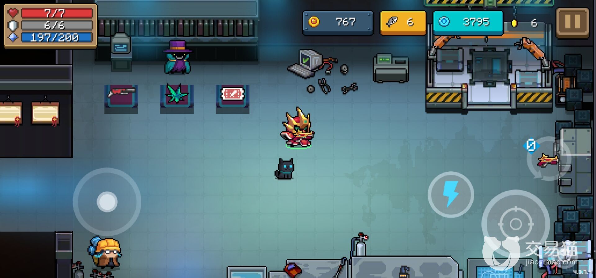 往大厅的最右边走就是实验室了,旁边的商贩会不定时的刷新一些武器制作图纸或者材料碎片、种子、肥料之类的商品,顺着路走下去来到锻造台可以制造获得的图纸上的武器,或者获取到一定次数的武器也可以制作出来,开局拿着制造的武器前去闯关也是非常帅的哦!旁边还有个机械台可以制造出机甲也是相当于在地牢闯关中多了一条命,不过就是需要获取到图纸才能制造出来,而且花费的材料也是特别多的,如果小伙伴们的材料足够的话还是建议制造出来,还是非常不错的。