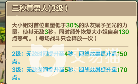二技能同样具有回复怒气效果,此外,它还能令己方生命最低的角色回复大额血量,并短暂无敌。