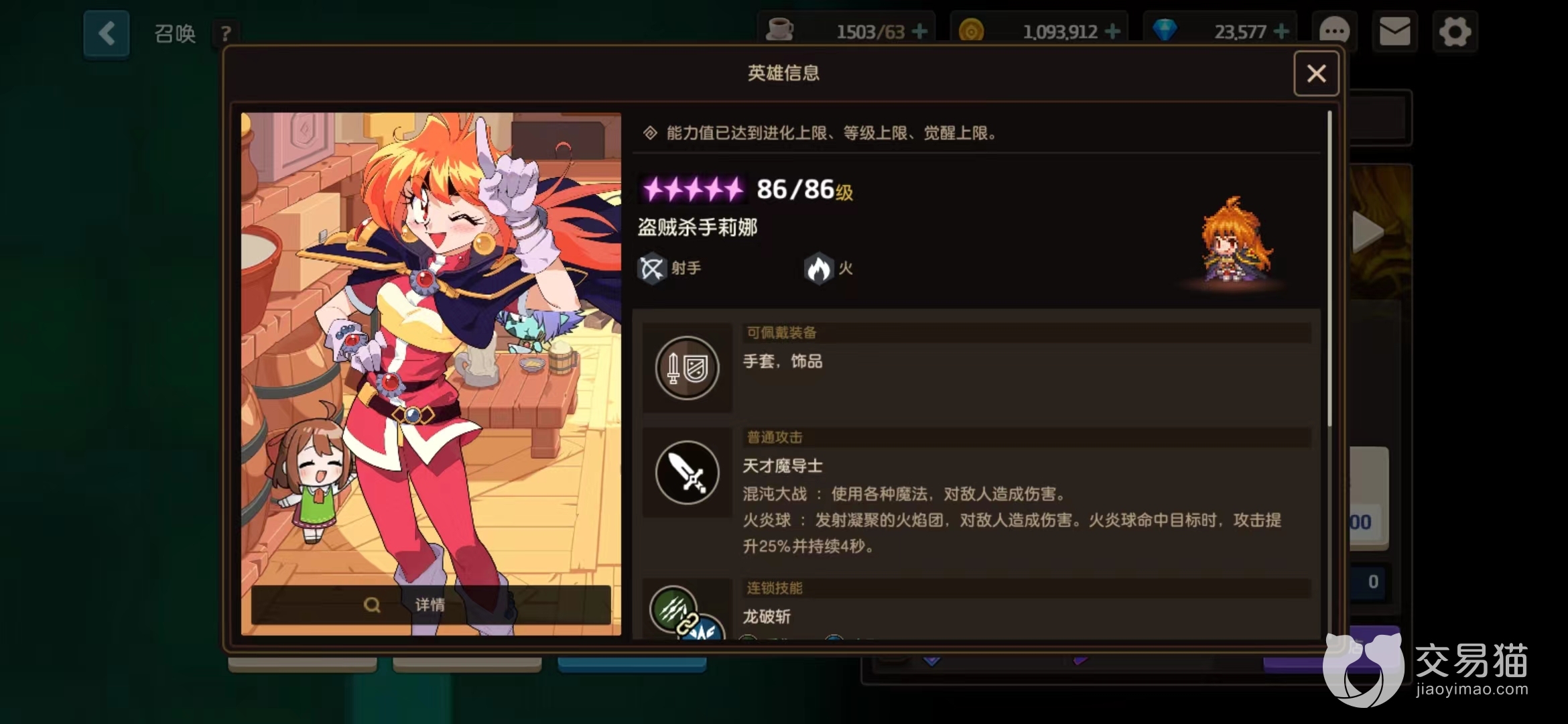 这个角色是游戏中的一个射手位置的角色,她是一个可以发出火系技能的魔法天才,技能混沌大战是可以使用各种魔法来对敌人展开魔法伤害,火炎球就是它的火系技能,这个技能是可以对敌人的伤害值升百分之二十五的,并且可以持续4秒钟的伤害。