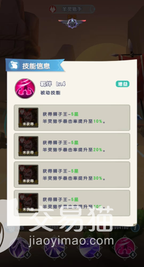 狮子王在这套阵容里面可以增加羊灵猎手的攻击暴击几率和伤害,可以辅助对方在后期完成刀刀打出暴击,将对方的主要输出角色直接秒杀带走的效果。除了最基础的增加伤害效果,还可以在使用被动技能让攻击力和生命力都可以得到大量的提升。