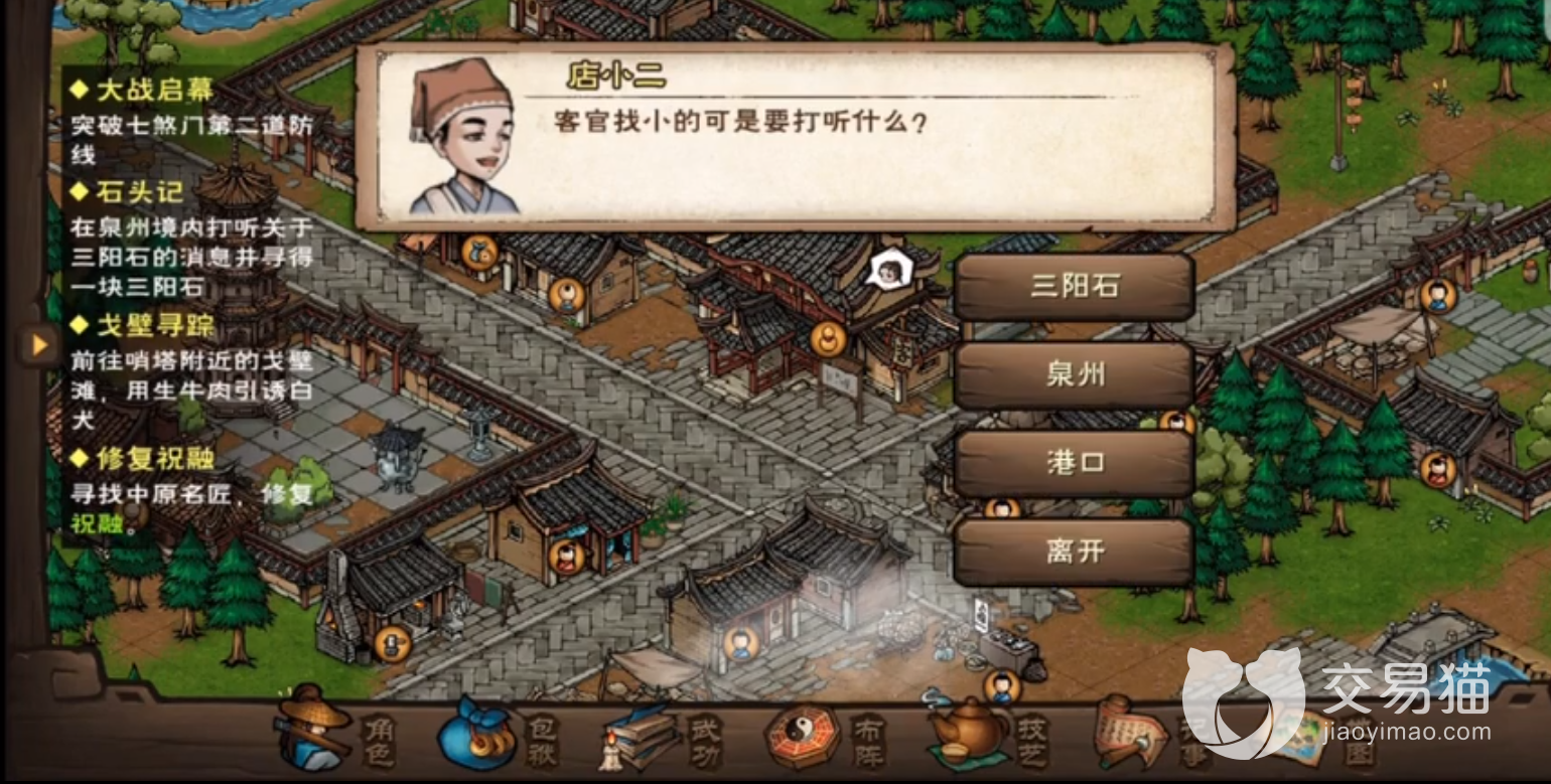 如果玩家想要顺利地通过这个任务,首先要获得三阳石,那么就先要前往泉州,在泉州的南安客栈里,你可以通过询问店小二来获取一些资源,但是你也可以选择不在他那打听,因为这个过程需要花费50两银子。