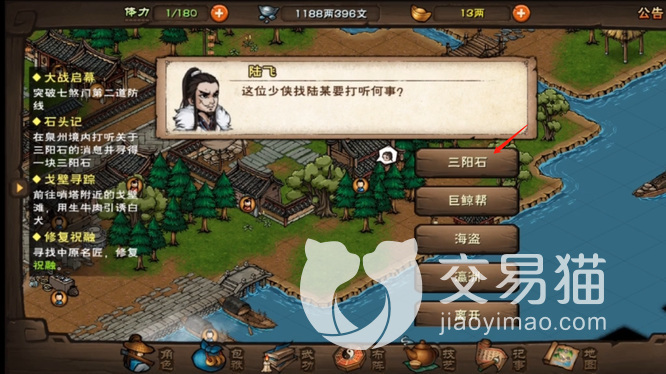 想要不花钱,玩家可以直接去泉州聚义厅寻找陆飞,他会告诉你有关三阳石的线索——银环岛,不过这个过程需要你独自乘船前往。