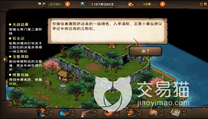在成功拿到三阳石后,你需要前往泉州找到段小芙,然后再利用三阳石搭配着内力来为她进行疗伤,当她的伤情都复原后,你就可以顺利完成石头记的任务了,要是觉得走路太慢,你完全可以利用马匹快速通行。