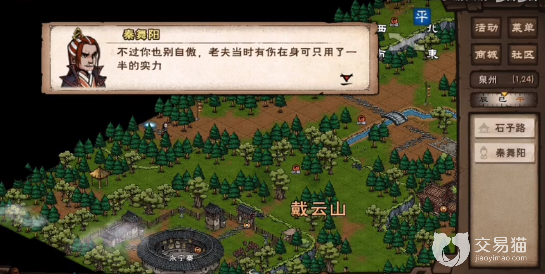 玩家在战胜秦舞阳就要去泉州,并在地图内四处转悠,又或者退出游戏之后再登陆,这样就有几率会再次遇见秦舞阳并触发任务,这个过程就需要玩家充足的耐心了,因为不是每一次都可以遇见秦舞阳的,完全需要玩家在这个过程中多转悠才可以。