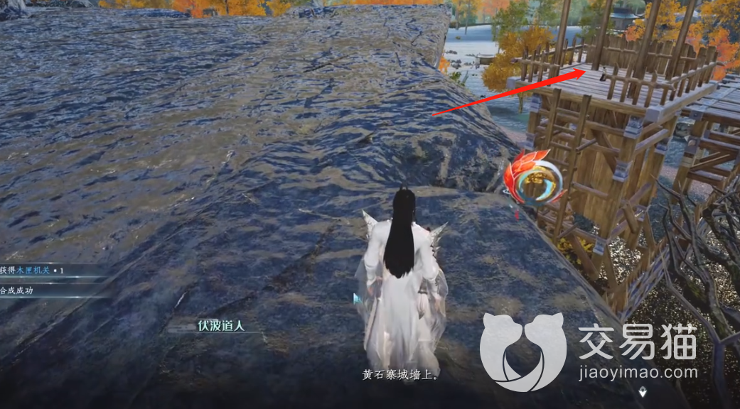 如果你也触发了这条任务,那么会出现下面的对话框,他会告诉你他在黄石寨的城墙上,大致是在红色箭头所指向的位置。