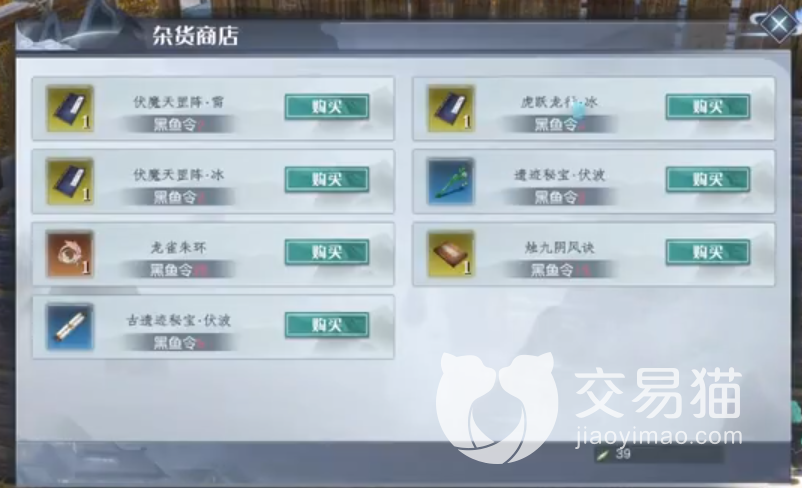 玩家可以与他交谈,你就会发现他的对话框有他真正的名字,他就是货真价实的伏波道人了;除了和他交谈外,也可以找他进入成就商店系统购买一些想要的东西。里面都会卖一些伏魔天附魔天罡·雷、伏魔天附魔天罡·冰、虎跃龙行·冰、遗迹秘宝·伏波、龙雀珠环、烛九阴风决、古遗迹秘宝·伏波;想要进行购买的话需要花费一定的黑鱼令