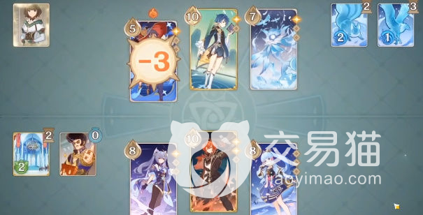 1、投掷:该玩法也是跟常规的卡牌游戏一样需要费用,在玩家的每个回合开始会有投掷阶段,会获得8个元素筛子进行投掷。这个元素筛子是一个八面股筛,可以投出冰水火雷风岩草等7种元素,当然还有一定几率投掷出万能元素,万能元素可以当成任意一种元素来使用。