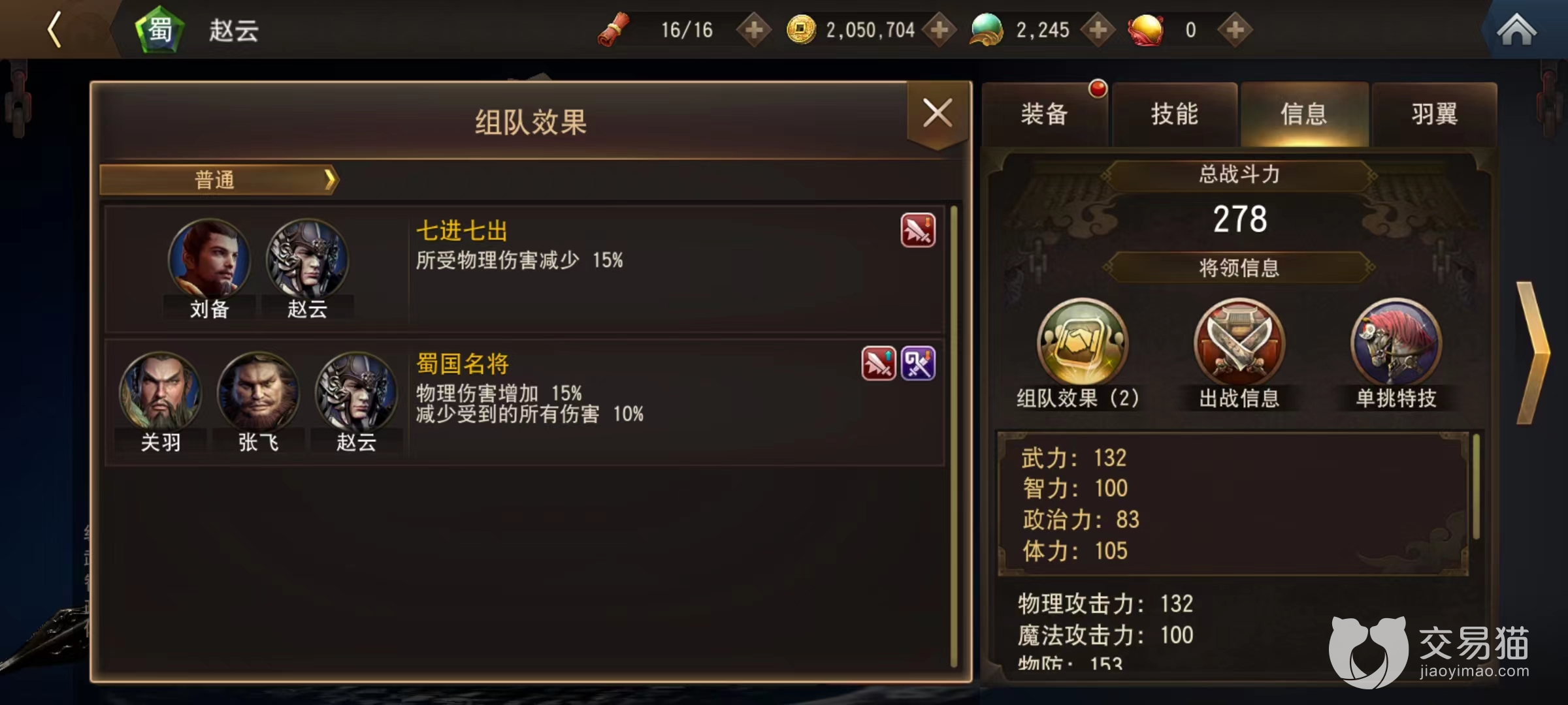 除此之外,赵云的搭配也非常容易达成,可以和刘备一起组成七进七出组合,减少受到的物理伤害,也可以和关羽张飞一起组成蜀国名将,提高物理输出和减少受到伤害。这两个组队效果都非常实用,而且前期也很容易达成,是新人和推图过程中常用搭配。