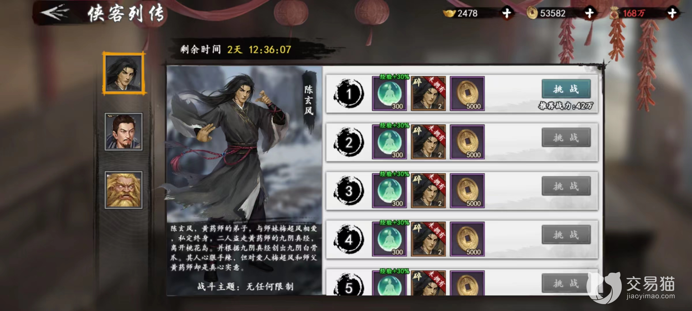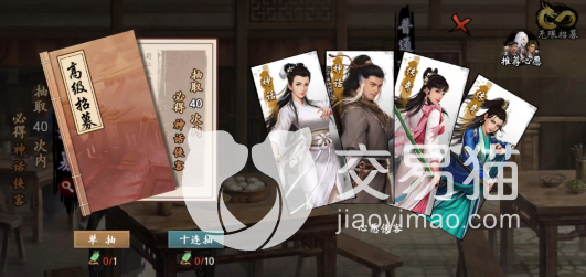 第一种就是游戏中的客栈招募,这个方式是最简单也可以说是最难的,最简单是因为它的门槛低,只需要我们有高级招募令这个道具就能进行招募,最难是因为概率,招募基本可以获得所有游戏中所有的侠客了,要从几百个侠客中精准的招募到杨过大侠,不得不说需要看自己的欧气了。