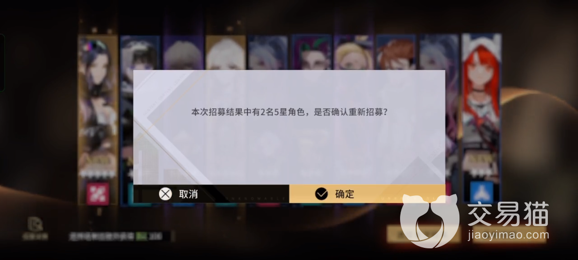 1、如果是抽到一个五星金色角色,那么可以在该界面直接重新招募,且不需要使用任何材料。而这种招募是无限次数的,只要大家不去点击确认就行,大家在抽到两个五星金色角色就可以停手了。
