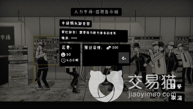 我们再补充好所有需要的能量后就可以开启第二天的生活了,今天也是同样的步骤,看一下我们到底要做什么样的工作,然后选择工作,上一天班拿到工资接着日复一日年复一年。