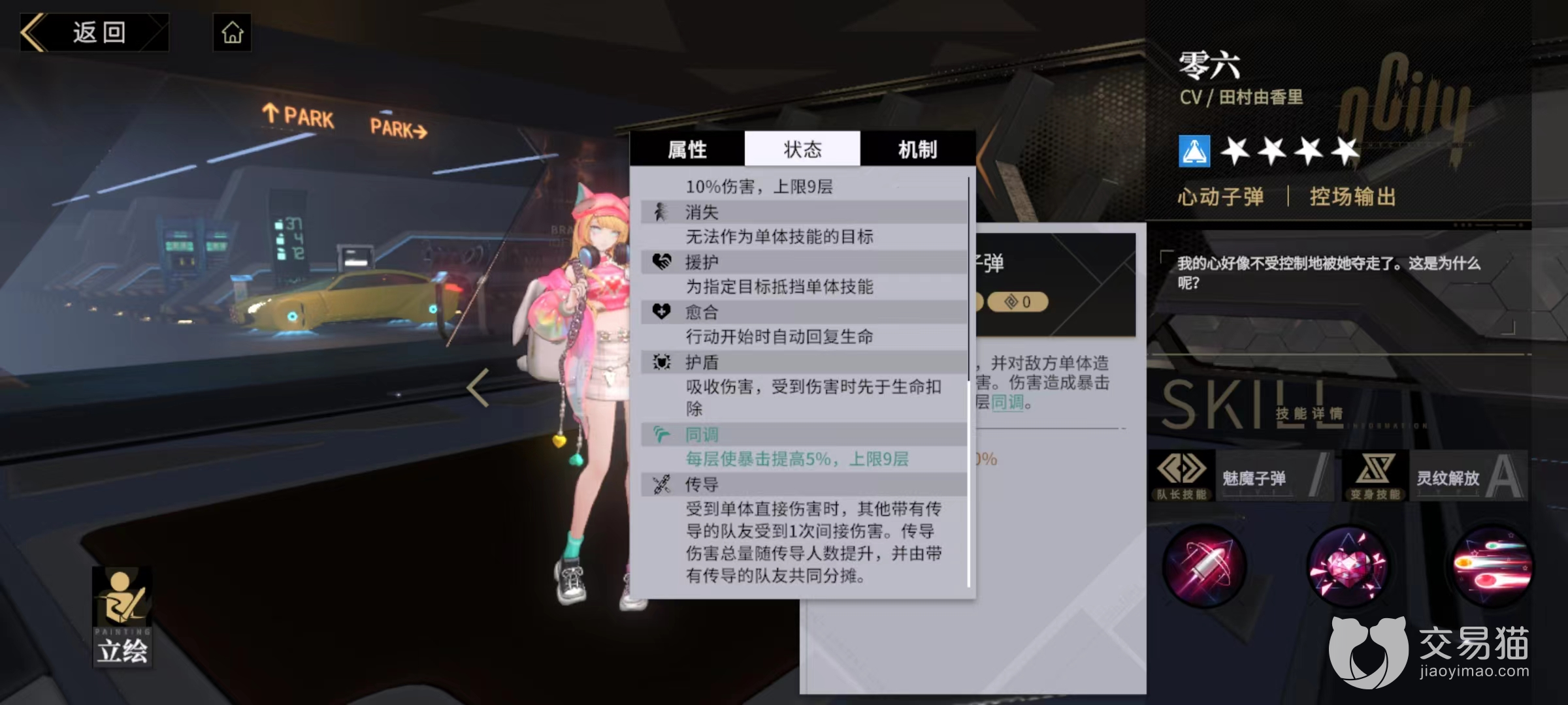 零六虽然只是一名初始4星角色,但却是不可多得的控场输出型选手,在各大阵容中都有她的身影,可谓是当前明星角色。当其成为队长时,可以使我方角色的技巧获得提升。普攻技能粉红子弹,使用后为自身附加一层同调效果,并且对敌方单体造成两次伤害,如果伤害能够出现暴击则额外获得一层同调。同调状态属于输出强化类效果,每一层都能使自身暴击提高5%,最多可以叠加到9层,也是当前输出角色非常喜欢的状态。