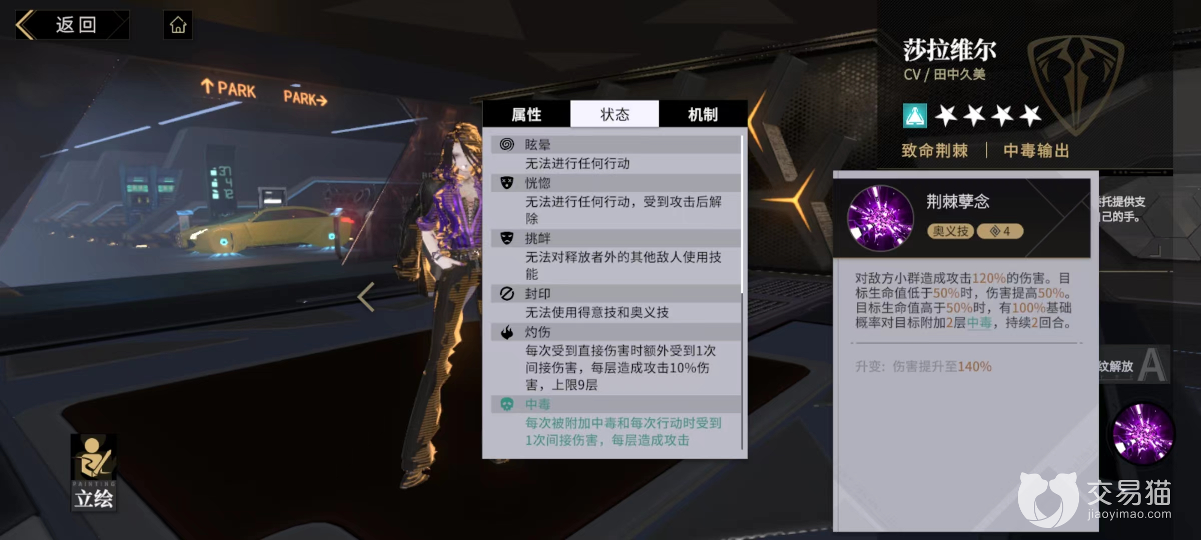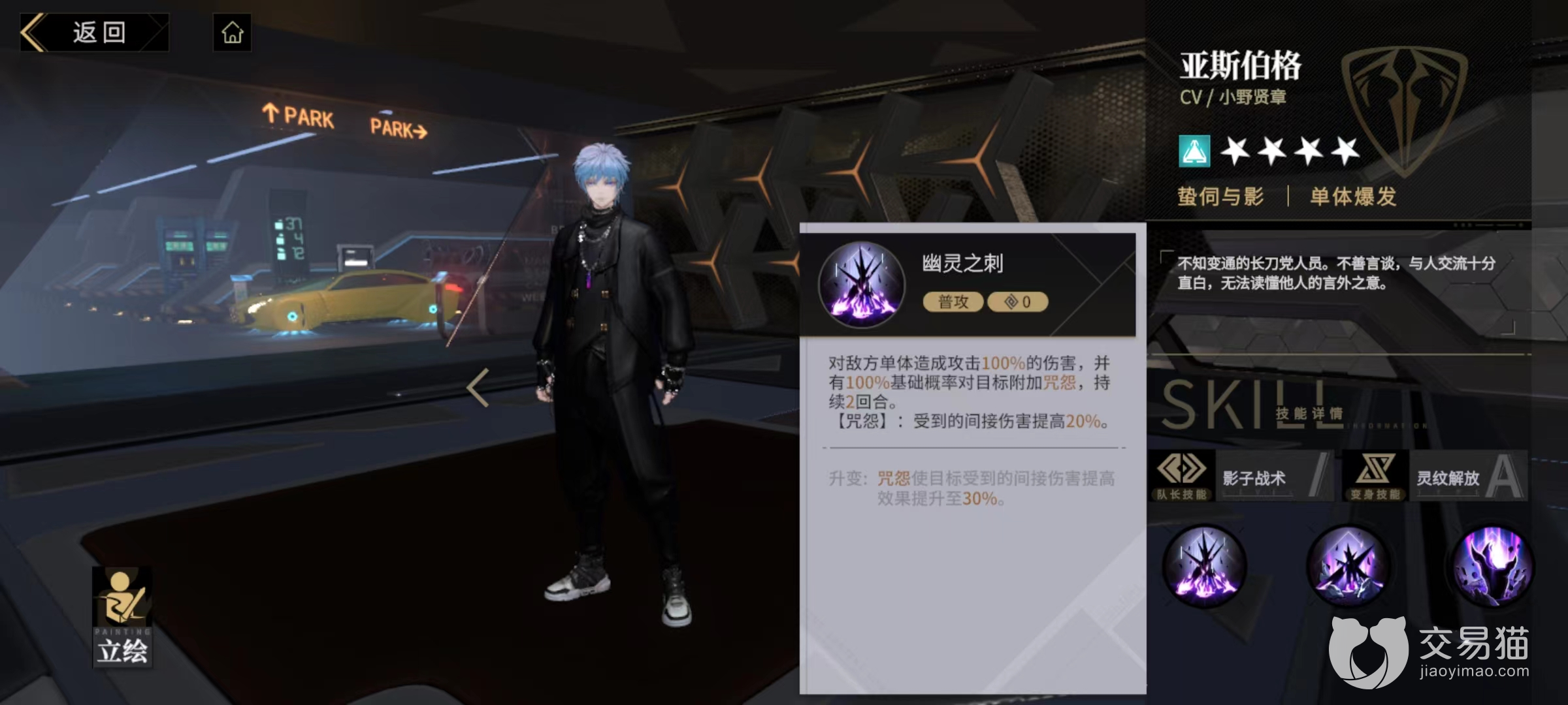 得意既罪孽深渊,自身获得隐匿状态,在期间内无法被单体技能和小范围技能选中,同时在此状态下造成的直接伤害提高,并且输出之后解除隐匿状态。奥义技恶灵苏醒伤害对方全体目标,目标身上减益效果越多则本次伤害的提升效果越好。所以亚斯伯格适合与一些能够造成不良状态的角色组成队伍。