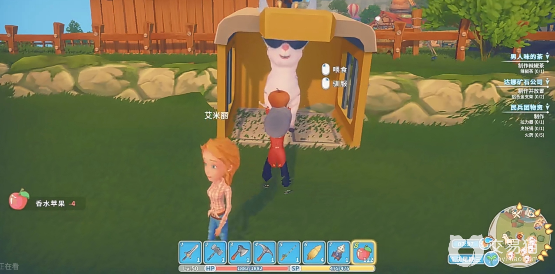 但是这个时候的羊驼还未被驯服,这时候进行第四步,驯服金角羊驼,具体操作方法为先观察笼子中金角羊驼头顶上的情绪符号,随后点击它的情绪符号,就会出现“喂食”和“驯服”两个选项,选择“喂食”,给它吃准备好的食物,然后再点击“驯服”这个选择,就可以抓到一只可可爱爱的金角羊驼啦!