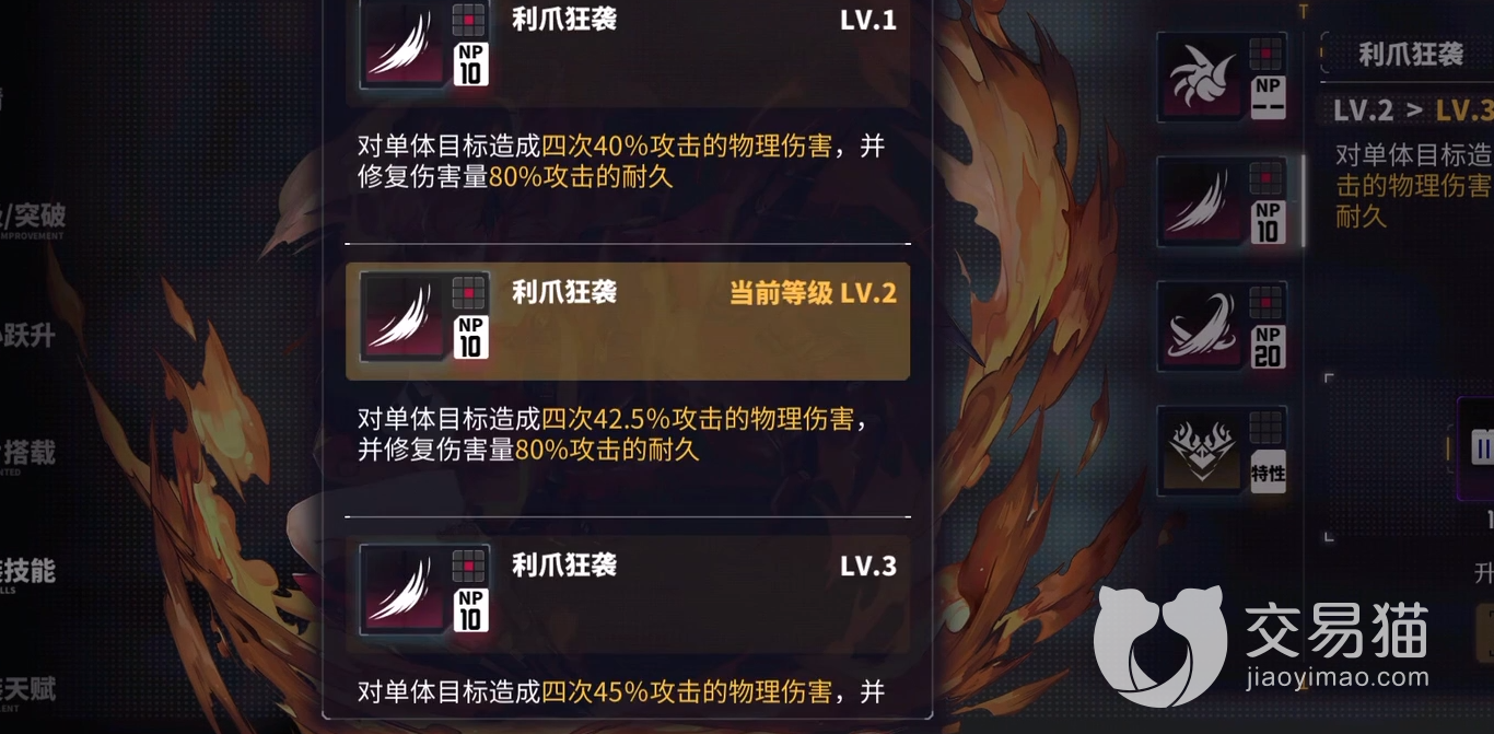 然后是冥河的利爪狂袭,这是一个伤害技能,对比其他的伤害技,它的伤害加成看起来貌似并不高,但需要注意的是这个技能的伤害加成是可以作用最多四次的。