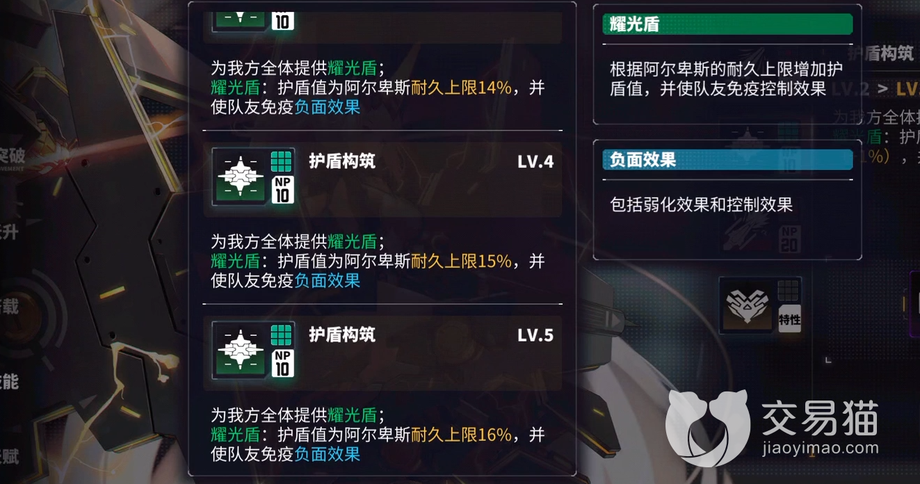 最后是阿尔卑斯耀光盾,先声明该角色的定位是一个辅助,所以此技能是否厉害还需要从辅助的角度来考虑。其效果为给友方全体提供护盾,护盾可以抵挡相当于阿尔卑斯百分之十五耐久的伤害,并且还能免疫控制!这就非常恐怖了,因为此盾一出,敌人既打不动你,也控不住你,所以他迎来的只有绝望。