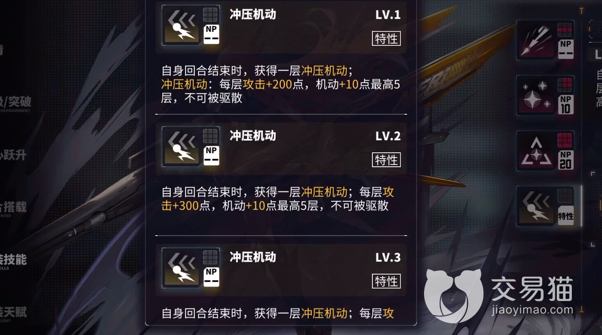 首先是飓风的冲压机动。这个角色自身的属性就非常高了,结合这个加属性的技能更是如虎添翼,来看看它所加属性的种类,居然同时兼顾了攻击与机动!