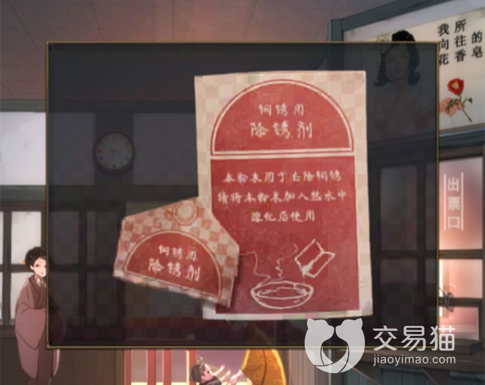 获取到除锈剂之后,玩家还要在出票口那拿个盘子,然后在候车室垫子下面获取毛巾,将毛巾放在那个炉子的水壶把上,就可以给碗中导入热水了,之后再将除锈剂到碗里,就可以用这个将后面那个包上的锈迹去除了。