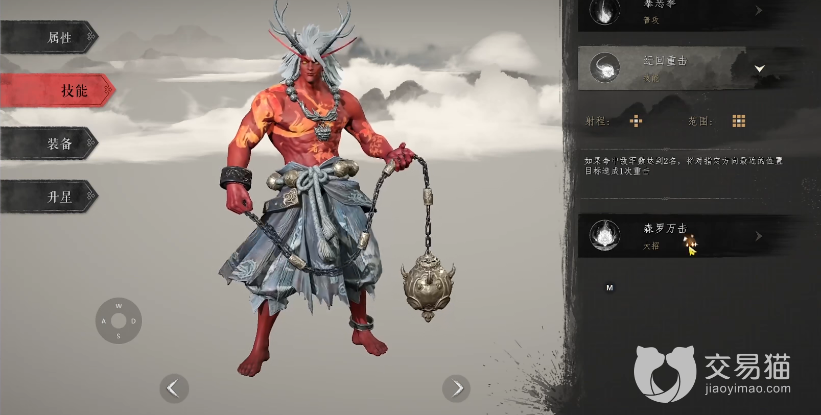 射程范围是自身的十字格以内,也就是周围四格,可以对敌方造成二次伤害,并拉向自己,如果命中两名以上的敌人,会自动释放迂回重击