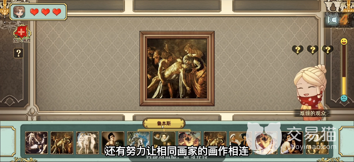 在挑战的过程中玩家们需要与无名对手进行挑战比赛,在第一回合的时候,玩家们最好优先选择增加一点体力的属性,这样可以增加玩家自身的生命值,才能在后续有更多的机会去挑战更多的美术爱好者,当挑战到一定量的时候就可以触发与馆长的交流。