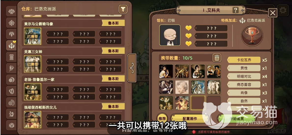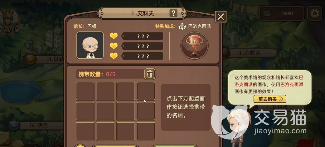 玩家在进行挑战艾科夫美术馆的时候游戏会给出一定的对手相关提示,根据提示玩家可以得知馆长巴顿和这个美术馆的观众都是比较偏爱巴洛克这个画派的作品,所以玩家在进行比赛的时候使用巴洛克画派的作品会更加容易获得观众喜爱评分。