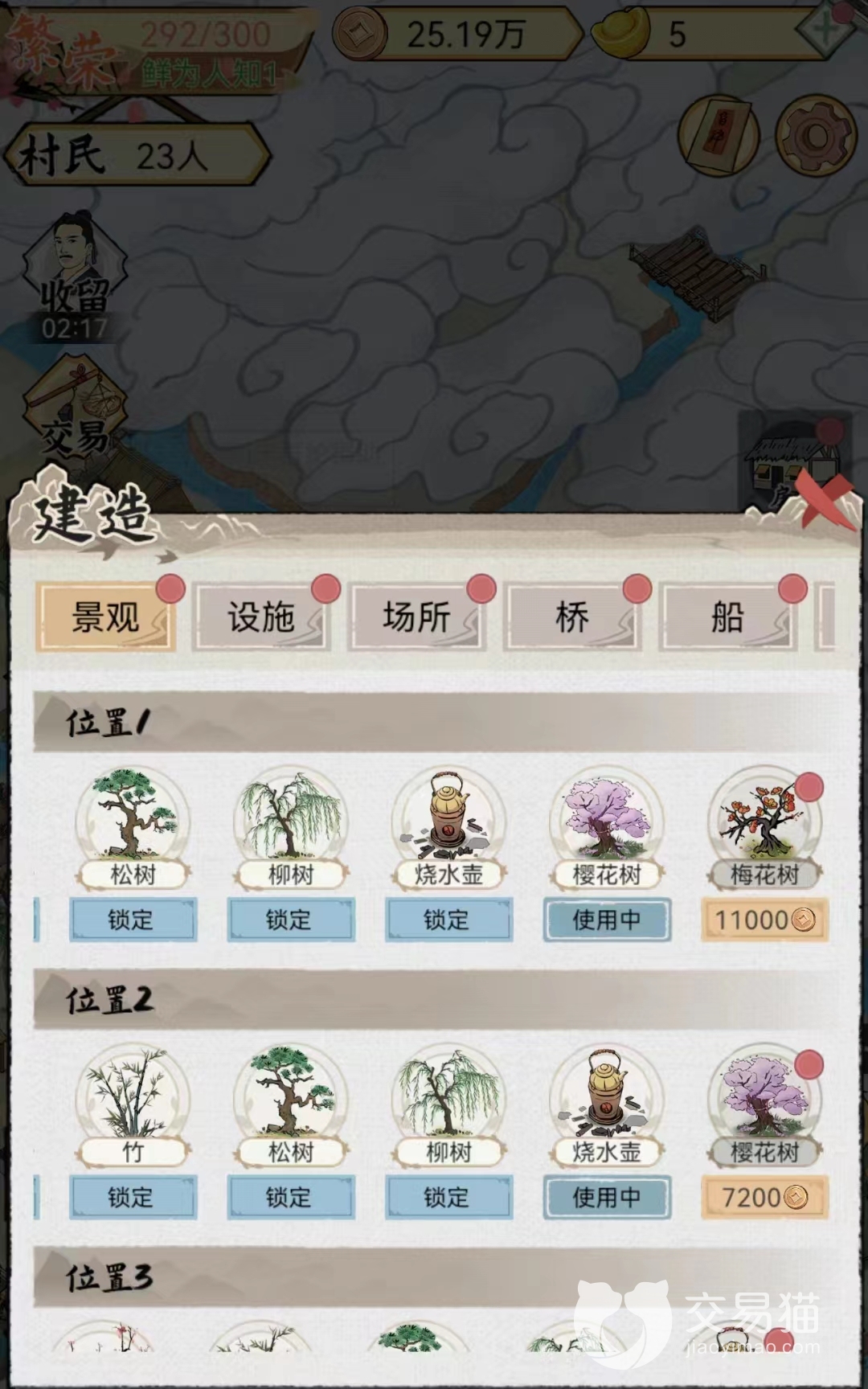 在游戏内有很多建筑设施的模板可以解锁购买获取,玩家们可以根据自己的喜好和想法来自由设计整个村落的方方面面。但是不少小伙伴点开界面就会发现,很多的外观和物品都需要一定的等级才能解锁,所以,玩家们第一步就是要先将繁荣度提升上来。