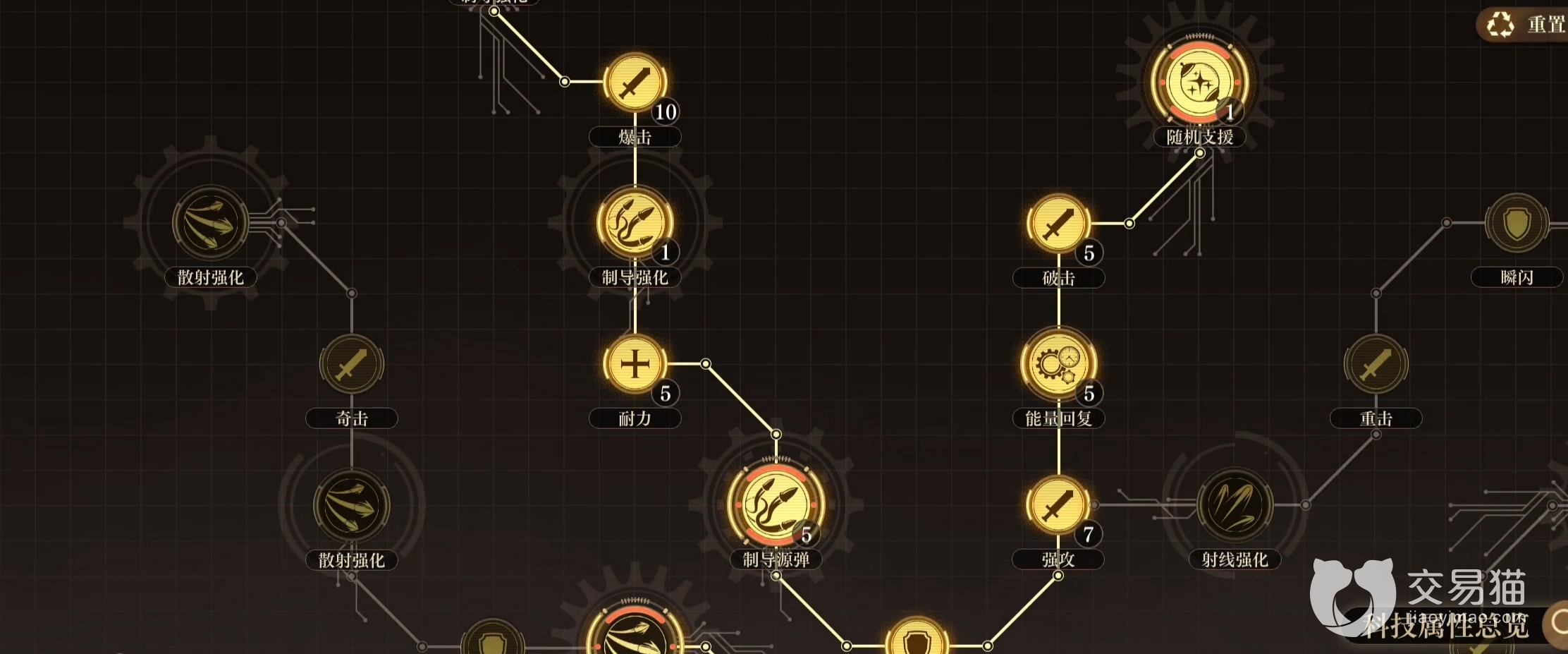 2、然后再来看主线路里的加点分线路优先级,首先是攻击路线一定是【射线强化】要最先点,因为另外的两种武器都是满级后打全2800%的倍数。