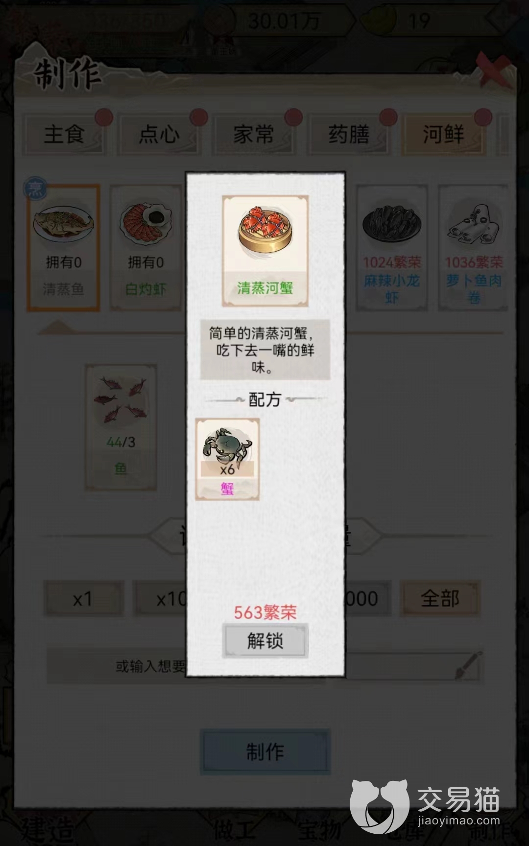 清蒸河蟹:该食物在交易系统最低售价是350个铜币一份,最高价格是1536个铜币,平时价格在943个铜币左右。