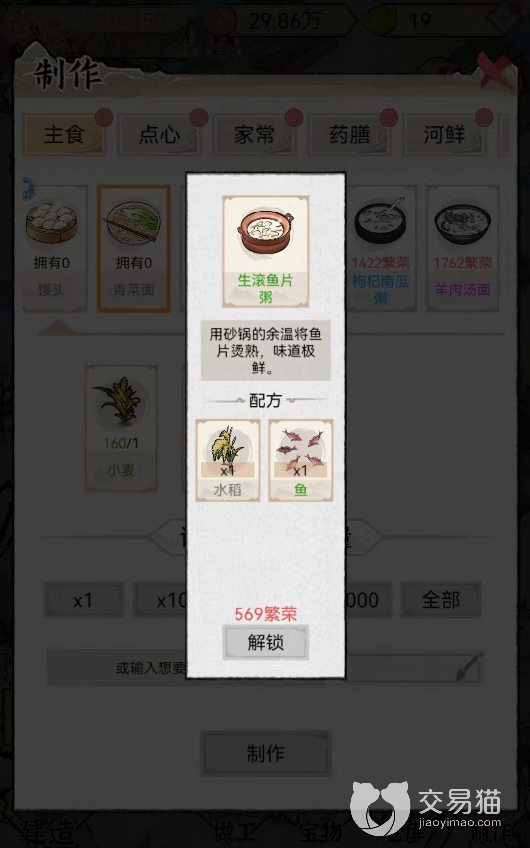 生滚鱼片粥:该食物在交易系统最低售价是93个铜币一份,最高价格是331个铜币,平时价格在212个铜币左右。