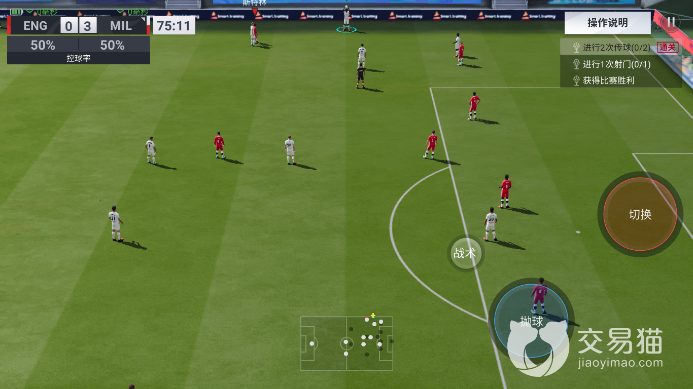 那么下面再给大家介绍一下这款游戏的几大亮点吧,首先就是画质,可以看到球场的绿地十分写实,球员的动作也比较立体。