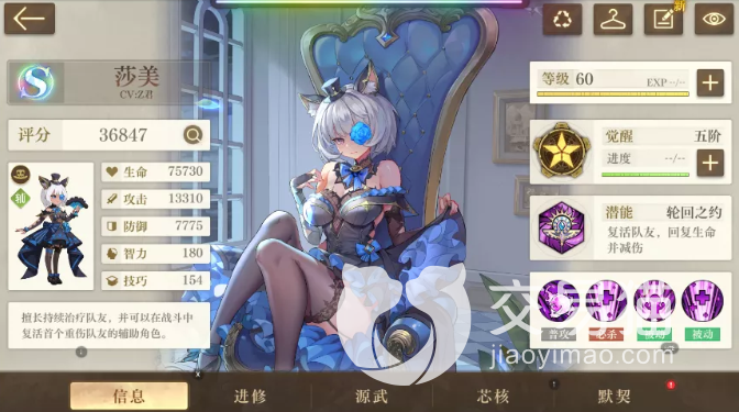 不过小编接下来的队伍推荐是有点极端的,三攻击两辅助,该阵容为莎美+艾尔伯特+安德烈+萝顿+乌鸦,虽然比较极端,但是大家看到莎美之后应该就知道为什么不带防御角色了吧,本身该角色就拥有不错的恢复能力,能够快速的恢复角色的血量,而且还有复活能力,即便是阵亡了也能够拉回来,完全不用担心输出环境的问题。