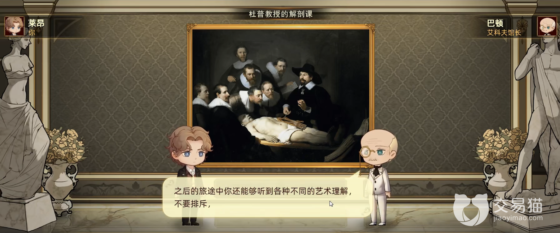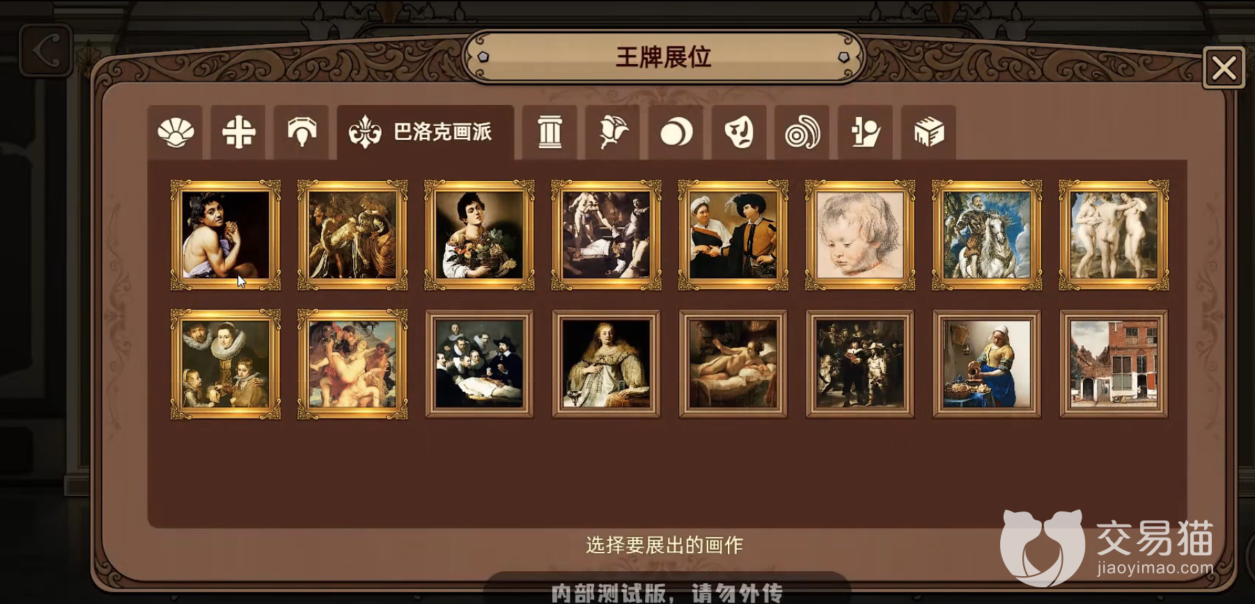 在玩家们刚进入游戏的时候,玩家们可以先选择激活巴洛克画派,这个画派的作品基本上都是以人物肖像为主,选择这些作品挡在展览厅可以给角色带来生命加成,后期在左边的展览厅继续添加作品就可以激活更多的画派属性。