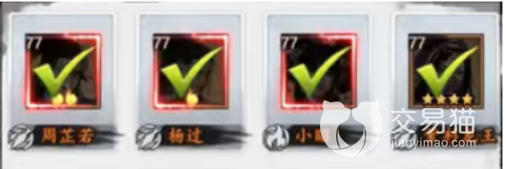 第二套阵容的角色:杨过,小龙女,范瑶,独孤求败。