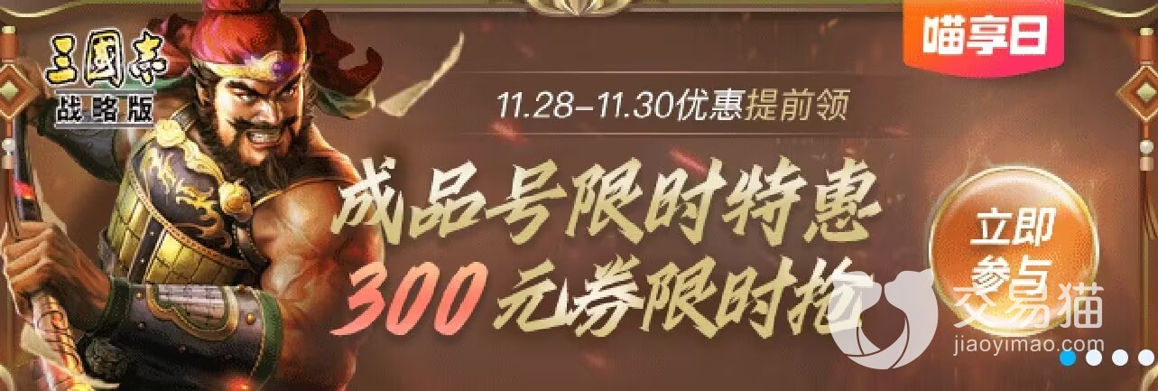 要说国内目前最流行的三国系列策略作绝对要数三国志战略版最受欢迎了,而该游戏也是引领了国内slg游戏的先锋之作,基本上后来的都是模仿它。三国志战略版苹果手机怎么买号很多玩家比较好奇,接下来小编就给大家带来交易猫这款买号平台,可以说是最适合购买三国志战略版的一款了,具体怎么回事儿一起来看看吧。