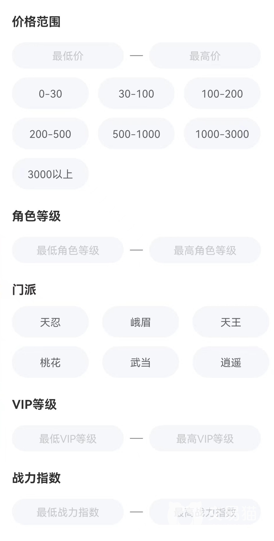在这里进行账号内容的浏览,可以看到非常精细的展现,详情中所在服务器、角色等级和门派以及VIP等级、战力指数等非常清晰一目了然,而且商品数量非常多,有充分的挑选机会。当然面对这样多的商品也会带来选择上的问题,为了解决这一点,平台推出了强大的筛选服务,可以进行价格、服务保障、角色等级,门派、VIP等级、战力指数等多项筛选,根据需要的内容逐步填写上,然后点击确定,就可以在茫茫多的商品里将最需要的那一小部分找出来。接下来就可以进行更细致的查看,直到确定自己需要的类型。