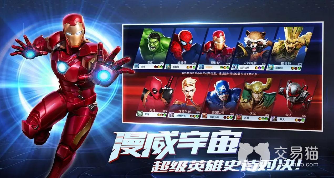 1、当一个漫威超级战争的游戏账号当中,包含了全部的英雄时,那么该游戏账号就是值得玩家们前去购买的,因为获取了之后就能够让大家感受到更多的游戏乐趣。对于想买号的玩家来说,小编推荐各位直接进入到交易猫平台当中去进行,享受该平台的安全交易环境。