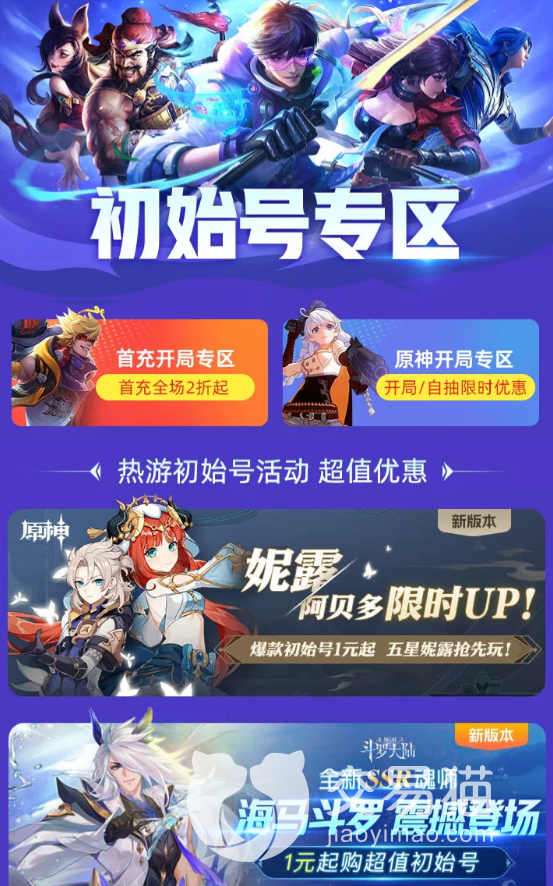 3、不过,交易猫不仅仅只针对预算充足的玩家开通了成品号的交易,那些预算不多的玩家,也可以使用初始号专区来得到自己想要的王者荣耀游戏号。这些账号将以更加实惠的价格进行交易。