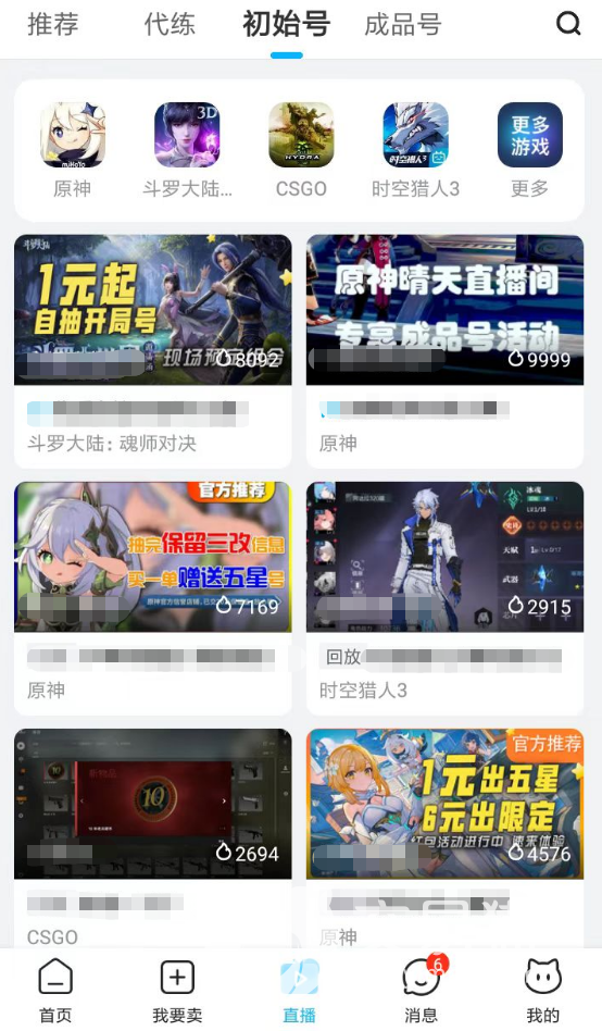 3、如果玩家自身设定了交易的预算限制,那么各位也可以直接通过直播专区的初始号分类下去购买更实惠的游戏号,在这里各位将体验到独特的直播内容,了解商品信息的速度也会变得更快。